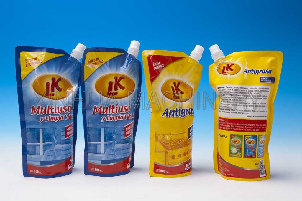 It works automatically: pouches feeding---positioned filling---cleaning the---caps screwing---end-products discharging .Liquid level controlling for ensuring exact filling volume.